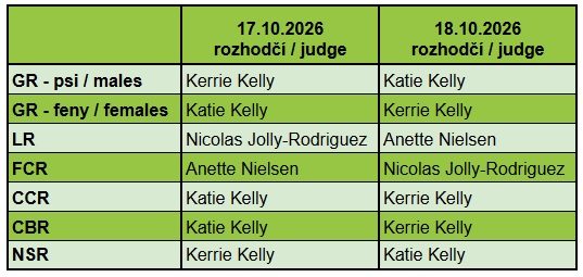 ROZHODČÍ KLUBOVÝCH VÝSTAV RK CZ 17. 10. – 18. 10. 2026